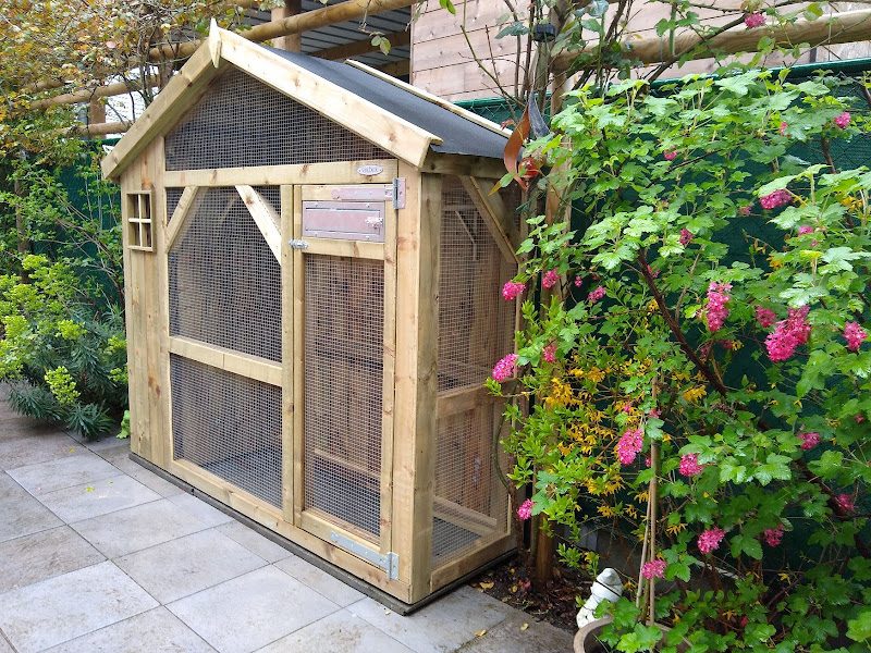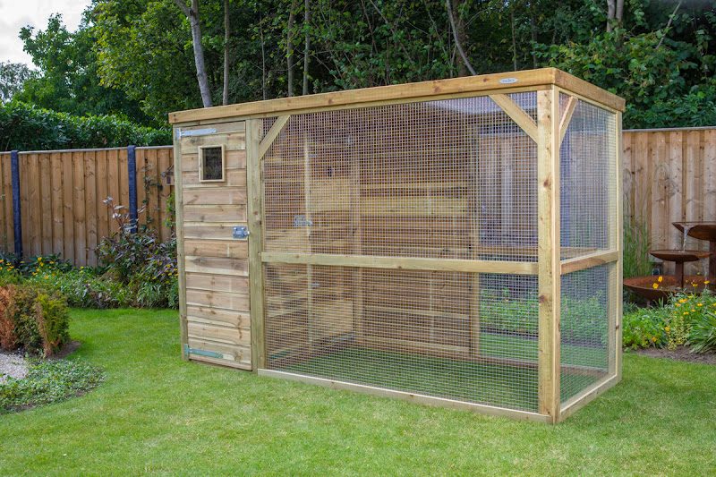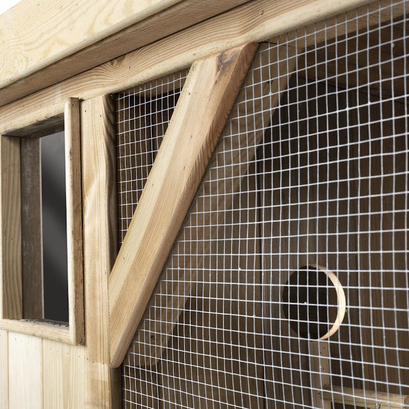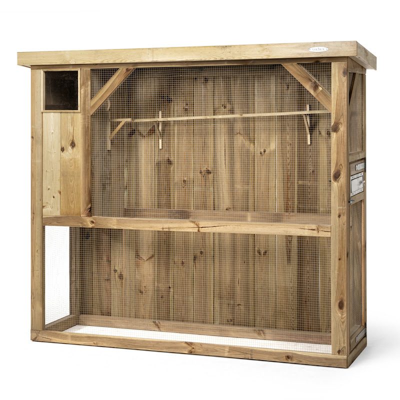 Deze voliere is vervaardigd uit verduurzaamd hout, en is hierdoor makkelijk te onderhouden.