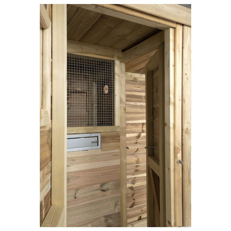 De sluis én het nachthok zijn vervaardigd uit onderhoudsloos behandeld hout.